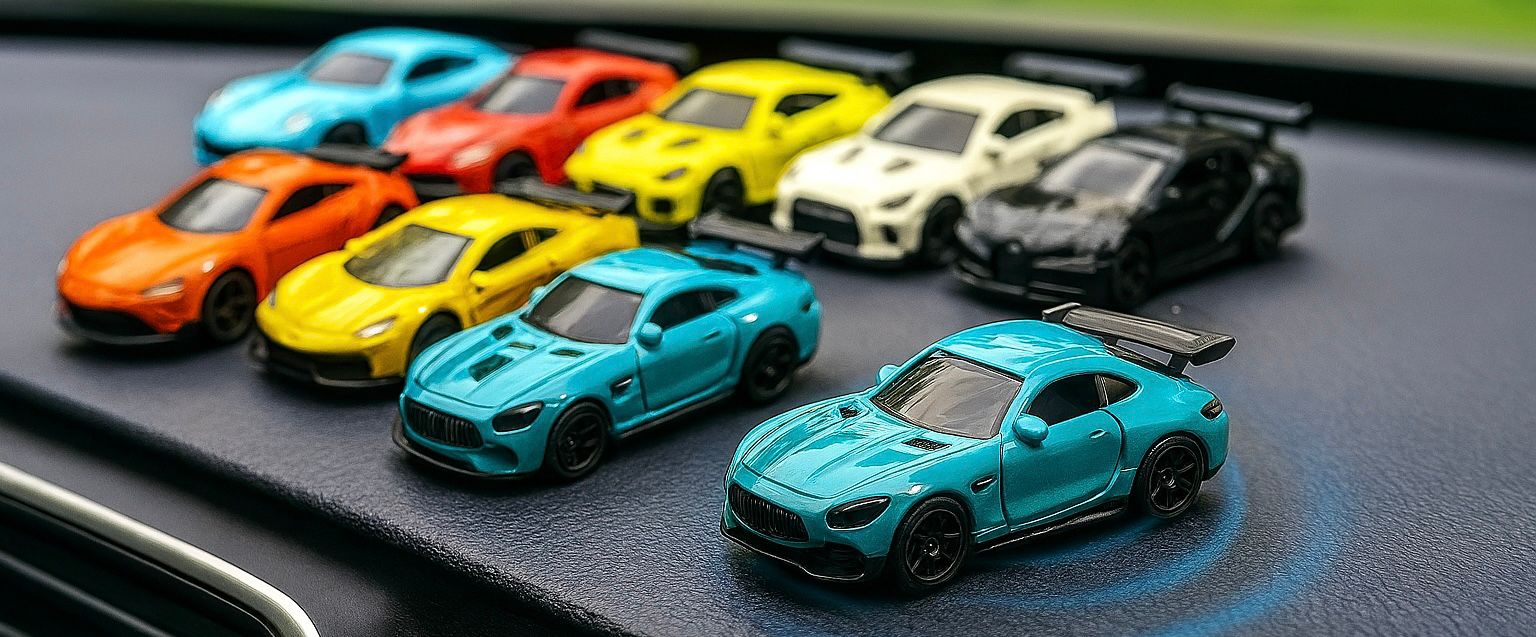 Choose from a range of vibrant colors and iconic designs, including models inspired by Lamborghini, Bugatti, Nissan GT-R, and more. Every car is crafted with attention to detail, making them perfect for collectors and enthusiasts who want their dashboard to stand out.